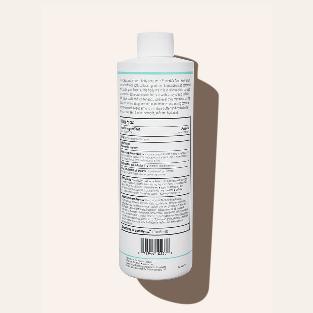 A gentle, all-over cleanser that's perfect for the body. This salicylic acid and glycolic acid formula reduces oiliness, unclogs pores, and exfoliates skin clearing acne and helping to prevent future breakouts, wherever they may occur. It also features vitamin e-infused exfoliating beads that gently burst to smooth and soften skin. 16 fl oz/475 ml.Properties