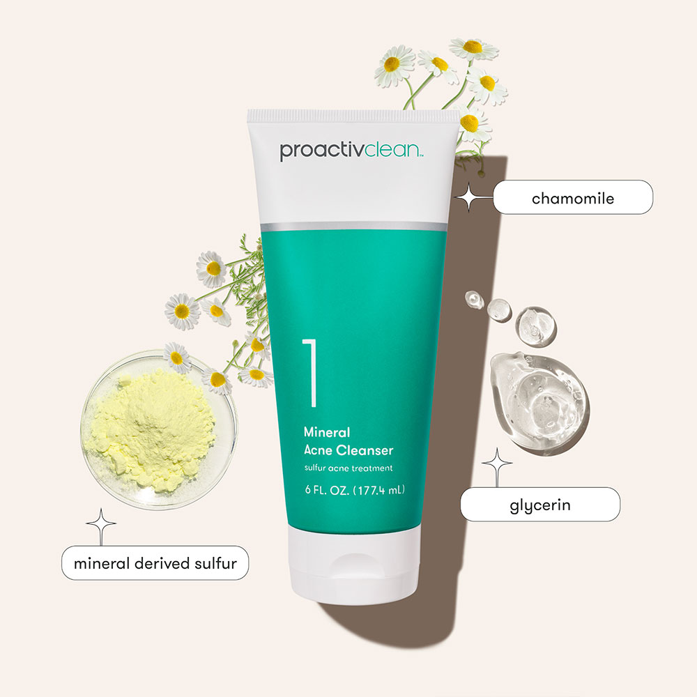 Dermatologist-developed for sensitive acne-prone skin, the Proactiv Clean Mineral Acne Cleanser contains mineral-derived sulfur to help reduce excess oil and clear dirt & impurities from pores, and chamomile to help soothe irritation, leaving your skin feeling clean, clear and refreshed without parabens, phthalates, sulfates & cyclic silicones. 6 fl oz/177 mlProperties