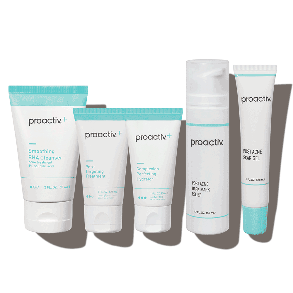 - <h6>3 easy steps, morning & night = clear, radiant skin</h6> <p>Proactiv+ is a 3-step routine designed to be used together twice a day (AM + PM) for your best results!</p> <h6>Step 1: Cleanse<br> SMOOTHING BHA CLEANSER</h6> <p>For best results: Treat your whole face twice a day, morning and night. Apply a small amount to dampened skin. Using your fingertips, gently massage in circular motions for 1 to 2 minutes. Rinse thoroughly with warm water. Pat dry and follow with Step 2 & Step 3. If going outside, follow with sunscreen.</p> <h6>Step 2: Treat<br> PORE TARGETING TREATMENT</h6> <p>For best results: Clean the skin thoroughly during Step 1 before applying this product. Cover the entire affected area with a thin layer one to three times daily. Because excessive drying of the skin may occur, start with one application daily, then gradually increase to two or three times daily if needed or as directed by a doctor. If bothersome dryness or peeling occurs, reduce application to once a day or every other day. If irritation or sensitivity develops, stop use of all products and consult a doctor before resuming. Follow with Step 3, and sunscreen if you’re going outside.</p> <h6>Step 3: Repair<br> COMPLEXION PERFECTING HYDRATOR</h6> <p>For best results: Apply Step 3 after completing Steps 1 and 2 of the Proactiv+ 3-step routine. Cover the entire affected area with a thin layer one to three times daily. Because excessive drying of the skin may occur, start with one application daily, then gradually increase to two or three times daily if needed or as directed by a doctor. If bothersome dryness or peeling occurs, reduce application to once a day or every other day. If going outside, apply sunscreen after using this product. If irritation or sensitivity develops, stop use of all products and consult a doctor before resuming.</p> <h6>POST ACNE DARK MARK RELIEF</h6> <p>For best results, apply to clean, dry skin both morning and night. Using fingertip, apply to affected areas. Do not rinse off. Allow to dry completely before applying moisturizer. If going outside, use a sunscreen SPF 30 or higher.</p> <h6>POST ACNE SCAR GEL</h6> <p>For best results: Apply to clean, dry skin on affected area only. Use daily as needed. Do not rinse off. If going outside, use a sunscreen SPF 30 or higher.</p>