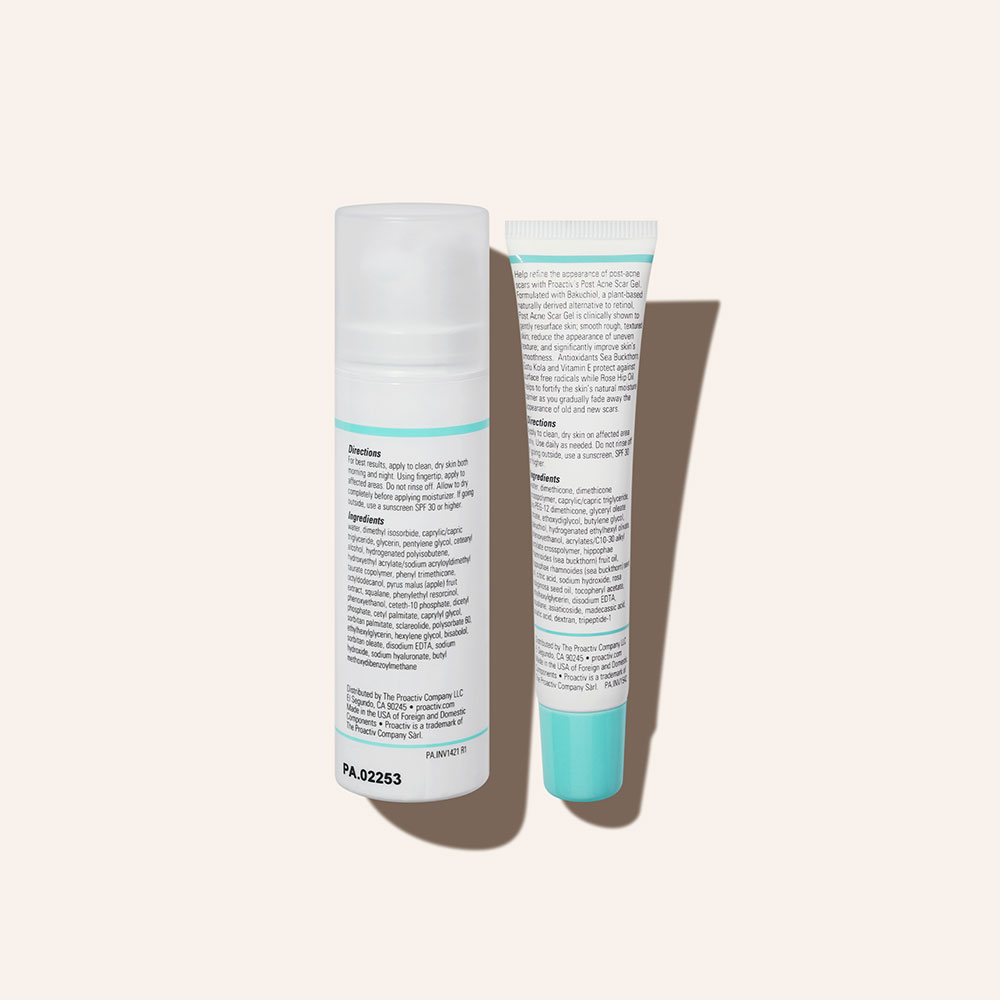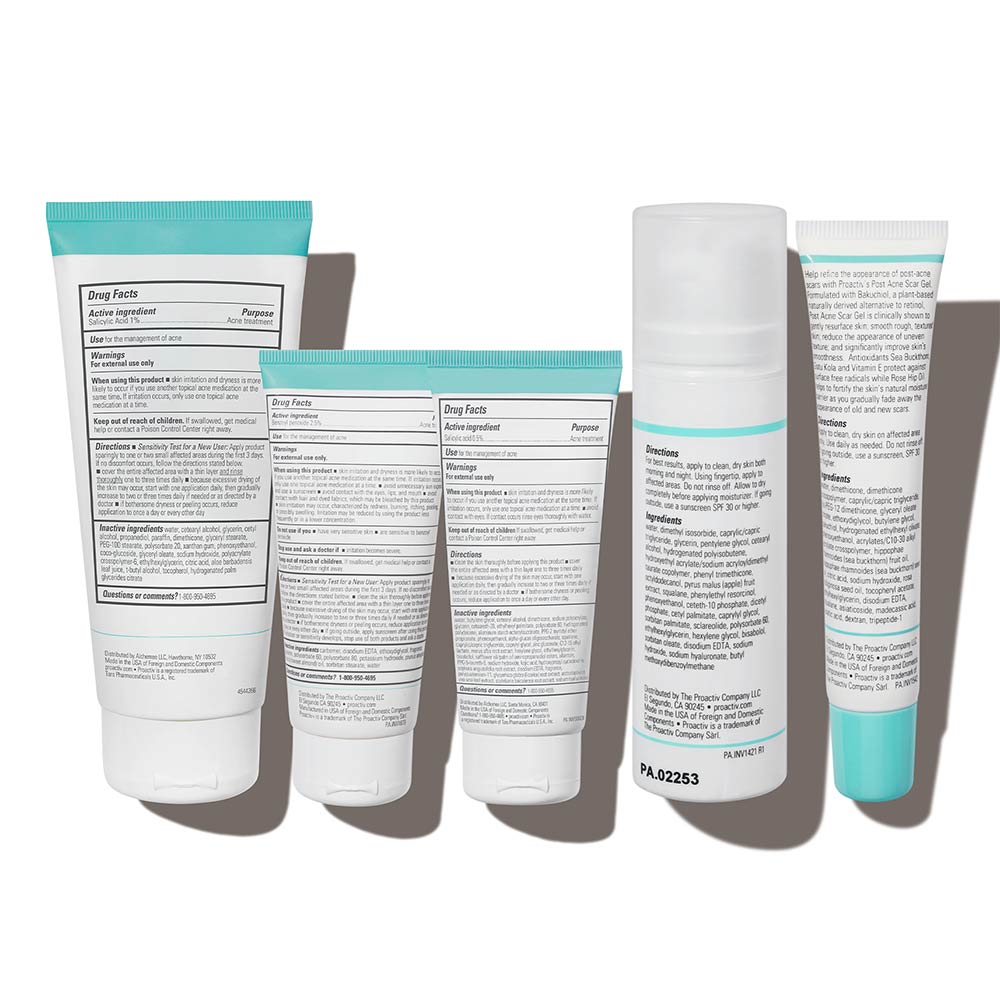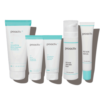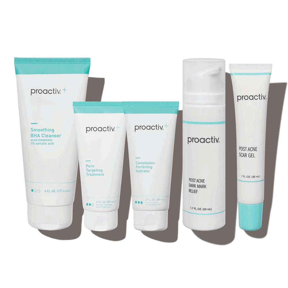 - <h6>3 easy steps, morning & night = clear, radiant skin</h6> <p>Proactiv+ is a 3-step routine designed to be used together twice a day (AM + PM) for your best results!</p> <h6>Step 1: Cleanse<br> SMOOTHING BHA CLEANSER</h6> <p>For best results: Treat your whole face twice a day, morning and night. Apply a small amount to dampened skin. Using your fingertips, gently massage in circular motions for 1 to 2 minutes. Rinse thoroughly with warm water. Pat dry and follow with Step 2 & Step 3. If going outside, follow with sunscreen.</p> <h6>Step 2: Treat<br> PORE TARGETING TREATMENT</h6> <p>For best results: Clean the skin thoroughly during Step 1 before applying this product. Cover the entire affected area with a thin layer one to three times daily. Because excessive drying of the skin may occur, start with one application daily, then gradually increase to two or three times daily if needed or as directed by a doctor. If bothersome dryness or peeling occurs, reduce application to once a day or every other day. If irritation or sensitivity develops, stop use of all products and consult a doctor before resuming. Follow with Step 3, and sunscreen if you’re going outside.</p> <h6>Step 3: Repair<br> COMPLEXION PERFECTING HYDRATOR</h6> <p>For best results: Apply Step 3 after completing Steps 1 and 2 of the Proactiv+ 3-step routine. Cover the entire affected area with a thin layer one to three times daily. Because excessive drying of the skin may occur, start with one application daily, then gradually increase to two or three times daily if needed or as directed by a doctor. If bothersome dryness or peeling occurs, reduce application to once a day or every other day. If going outside, apply sunscreen after using this product. If irritation or sensitivity develops, stop use of all products and consult a doctor before resuming.</p> <h6>POST ACNE DARK MARK RELIEF</h6> <p>For best results, apply to clean, dry skin both morning and night. Using fingertip, apply to affected areas. Do not rinse off. Allow to dry completely before applying moisturizer. If going outside, use a sunscreen SPF 30 or higher.</p> <h6>POST ACNE SCAR GEL</h6> <p>For best results: Apply to clean, dry skin on affected area only. Use daily as needed. Do not rinse off. If going outside, use a sunscreen SPF 30 or higher.</p>