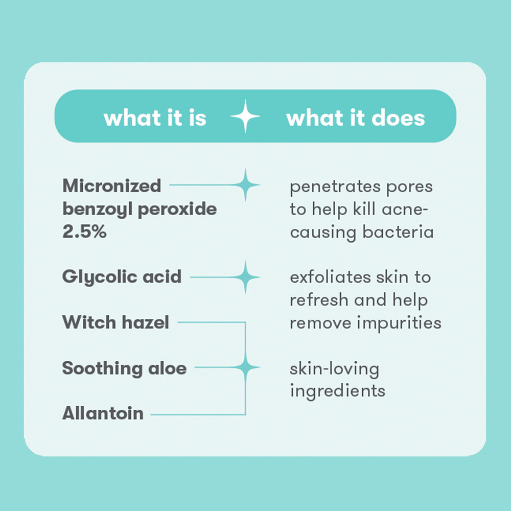 The original 3-step acne treatment that started it all. Featuring acne-clearing benzoyl peroxide & glycolic acid to treat and prevent acne, especially for oily/combo skin. Now in trial sizes so you take your routine on-the-go or try it out for the first time worry-free.Properties