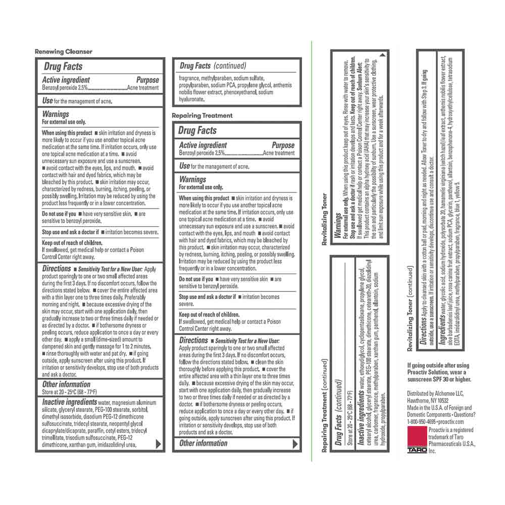 - <p>RENEWING CLEANSER</p> <p>Active Ingredient: Benzoyl Peroxide, 2.5% Inactive Ingredients: Water, Magnesium Aluminum Silicate, Glyceryl Stearate, PEG-100 Stearate, Sorbitol, Dimethyl Isosorbide, Disodium PEG-12 Dimethicone Sulfosuccinate, Tridecyl Stearate, Neopentyl Glycol Dicaprylate/Dicaprate, Paraffin, Cetyl Esters, Anthemis Nobilis Flower Extract, Tridecyl Trimellitate, Trisodium Sulfosuccinate, PEG-12 Dimethicone, Sodium Sulfate, Sodium Hyaluronate, Propylene Glycol, Sodium PCA, Xanthan Gum, Phenoxyethanol, Imidazolidinyl Urea, Methylparaben, Propylparaben, Fragrance</p> <p>REVITALIZING TONER</p> <p>Ingredients: water, glycolic acid, sodium hydroxide, polysorbate 20, hamamelis virginiana (witch hazel) leaf extract, anthemis nobilis flower extract, aloe barbadensis leaf juice, rosa = canina fruit extract, sodium PCA, glycerin, panthenol, allantoin, benzophenone-4, hydroxyethylcellulose, tetrasodium EDTA, imidazolidinyl urea, methylparaben, propylparaben, fragrance, blue 1, yellow 5</p> <p>REPAIRING TREATMENT</p> <p>Active Ingredient: Benzoyl Peroxide, 2.5% Inactive Ingredients: water, ethoxydiglycol, cyclotetrasiloxane, cyclopentasiloxane, propylene glycol, cetearyl alcohol, dimethicone, glyceryl stearate, PEG-100 stearate, panthenol, allantoin, xanthan gum, ceteareth-20, carbomer, sodium hydroxide, diazolidinyl urea, methylparaben, propylparaben, fragrance</p>