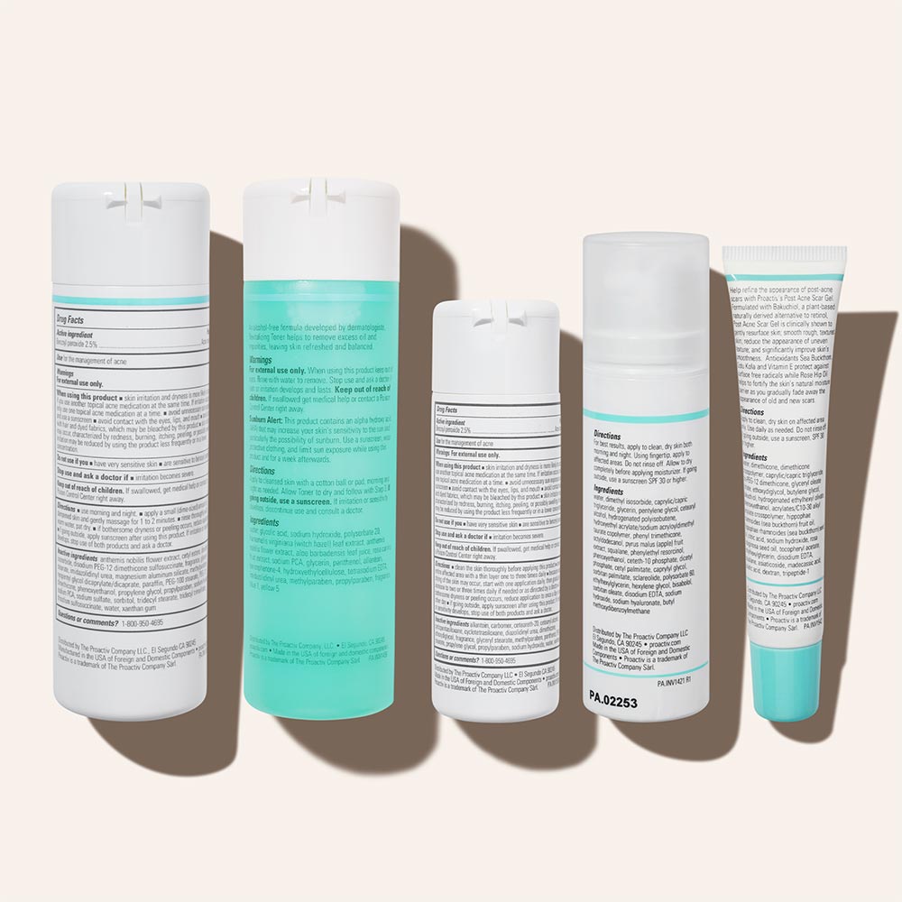 - <ul> <h6>Proactiv 3-Step System</h6> <li>This Proactiv 3-Step System revolutionized the treatment of acne</li> <li>Each step builds on the step before, attacking the acne cycle to clear current blemishes and help prevent new ones from forming</li> <li>The Proactiv 3-Step System features advanced benzoyl peroxide—designed to work faster and gentler than ever before</li> </ul> <ul> <h6>Post Acne Dark Mark Relief</h6> <li>A moisturizer that helps to reduce the appearance of post acne dark marks</li> <li>Helps improve the appearance of skin redness by nourishing the skin</li> <li>Helps even skin tone</li> <li>Formulated with antioxidants and skin conditioning ingredients</li> <li>Hydrates the skin</li> <li>Hydroquinone free</li> </ul> <ul> <h6>Post Acne Scar Gel</h6> <li>This formula improves the appearance of post-acne scars and is clinically shown to gently resurface skin and smooth rough, textured areas</li> </ul>