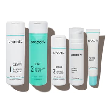 - <h6>JUST 3 STEPS 2X A DAY = CLEAR, RADIANT SKIN</h6> <p>Proactiv Solution is designed to be used consistently for best results.</p> <h6>RENEWING CLEANSER</h6> <p>Apply twice daily, morning and night. Treat your whole face. Apply a small (dime-sized) amount to dampened skin and gently massage with fingertips for 1 to 2 minutes. Rinse thoroughly with warm water. Pat dry and follow with Step 2 (Revitalizing Toner). If bothersome dryness or peeling occurs, reduce application to once a day or every other day. If going outside, use a sunscreen.</p> <h6>REVITALIZING TONER</h6> <p>Apply to cleansed skin with a cotton ball or pad, morning and night as needed. Allow toner to dry and follow with Step 3. If going outside, use a sunscreen. If irritation or sensitivity develops, discontinue use and consult a doctor.</p> <h6>REPAIRING TREATMENT</h6> <p>Use morning and night. On clean skin, apply a thin layer to the entire affected area. Allow to dry. Do not rinse off. If bothersome dryness or peeling occurs, reduce application use. If going outside, use a sunscreen.</p> <h6>POST ACNE DARK MARK RELIEF</h6> <p>For best results, apply to clean, dry skin both morning and night. Using fingertip, apply to affected areas. Do not rinse off. Allow to dry completely before applying moisturizer. If going outside, use a sunscreen SPF 30 or higher. </p> <h6>POST ACNE SCAR GEL</h6> <p>For best results: Apply to clean, dry skin on affected area only. Use daily as needed. Do not rinse off. If going outside, use a sunscreen, SPF 30 or higher</p>