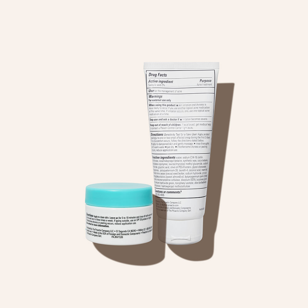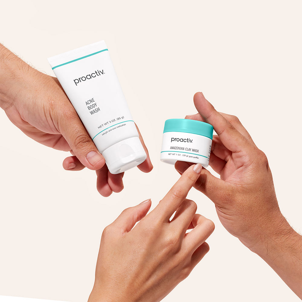 - <ul> <h6>PROACTIV 3-STEP SYSTEM</h6> <li>This Proactiv 3-Step System revolutionized the treatment of acne</li> <li>Each step builds on the step before, attacking the acne cycle to clear current blemishes and help prevent new ones from forming</li> <li>The Proactiv 3-Step System features advanced benzoyl peroxide—designed to work faster and gentler than ever before</li> </ul> <ul> <h6>ACNE BODY WASH</h6> <li>Helps clear acne blemishes on the body</li> <li>Unclogs pores to clear and help prevent whiteheads, blackheads and future breakouts</li> <li>Aloe vera extract to help soften and soothe the skin</li> <li>Formulated with salicylic acid to encourage the shedding of dead skin cells</li> <li>Contains a soothing complex of shea butter, vitamin E, sweet almond oil and cocoa butter</li> </ul> <ul> <h6>AMAZONIAN CLAY MASK</h6> <li>Purifying: Formulated with bentonite and kaolin, a blend of Amazonian white clay and minerals used to absorb impurities and excess oil</li> <li>Restorative: Deep cleans pores while shrinking their appearance; helps moisturize to reveal softer, smoother, healthier-looking skin</li> <li>Nourishing: Vitamin, nutrient and antioxidant rich formula contains skin-conditioning botanical extracts</li> </ul>