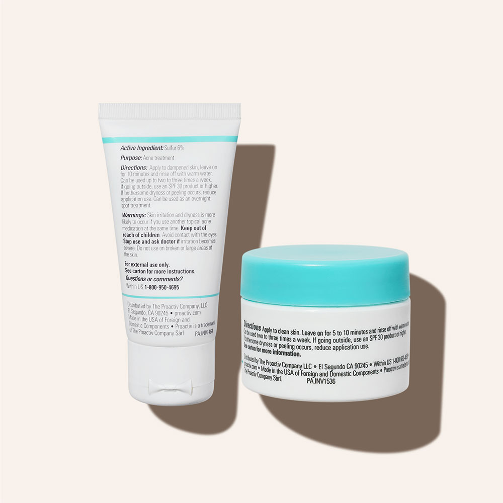 - <h6> Proactiv Skin Purifying Mask </h6> <p>As a mask:</p> <ul> <li>Apply to dampened skin, leave on for 10 minutes and rinse off with warm water</li> <li> Can be used up to two to three times a week <p>Tip: Can be used as an overnight spot treatment:</p> </li> <li>Dab onto affected area and leave on overnight</li> <li>In the morning, rinse off with warm water</li> </ul> <p>If bothersome dryness or peeling occurs, reduce application use. If going outside, use an SPF 30 product or higher.</p> <h6>Amazonian Clay Mask</h6> <p>For best results:</p> <ul> <li>Apply to clean skin</li> <li>Leave on for 5 to 10 minutes and rinse off with warm water</li> <li>Can be used two to three times a week</li> <li>If going outside, use an SPF 30 product or higher</li> </ul> <p>If bothersome dryness or peeling occurs, reduce application use.</p>
