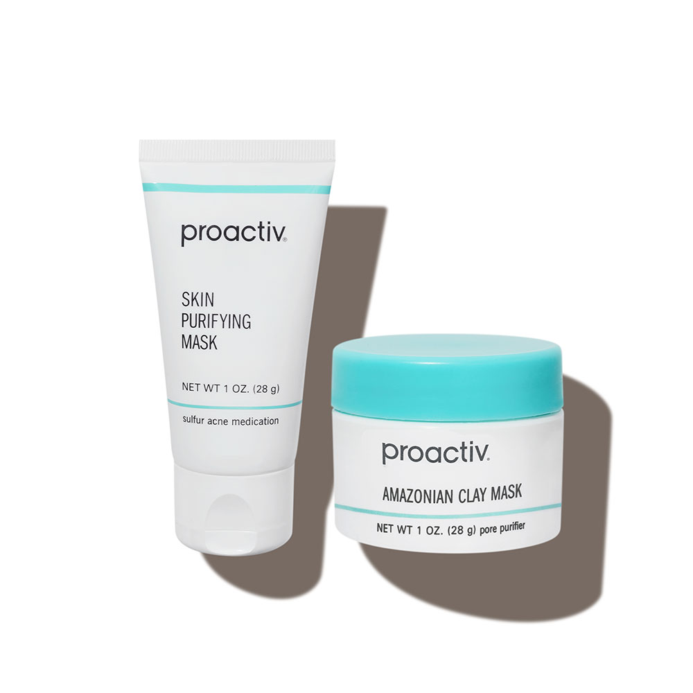 - <h6> Proactiv Skin Purifying Mask </h6> <ul> <li>Skin Purifying Mask</li> <li>Detoxifying (6%) sulfur acne medicine clears blemishes and helps prevent new breakouts from forming</li> <li>Helps alleviate irritation and reduces the appearance of redness</li> <li>Deep cleans pores and shrinks their appearance</li> <li>Helps give the appearance of smoother, more refined skin</li> <li>Helps reduce excess oil and shine</li> <li>Developed to help moisturize the skin</li> <li>Formulated with kaolin clay, antioxidant vitamin E and tea tree oil</li> <li>Non-greasy, noncomedogenic</li> <li>Dermatologist tested</li> <li>Suitable for all skin types – oily, dry, combination, normal and sensitive</li> <li>Size: 1 fl oz.</li> </ul> <h6>Amazonian Clay Mask</h6> <ul> <li>Purifying: Formulated with bentonite and kaolin, a blend of Amazonian white clay and minerals used to absorb impurities and excess oil</li> <li>Restorative: Deep cleans pores while shrinking their appearance; helps moisturize to reveal softer, smoother, healthier-looking skin</li> <li>Nourishing: Vitamin, nutrient and antioxidant rich formula contains skin-conditioning botanical extracts</li> </ul>