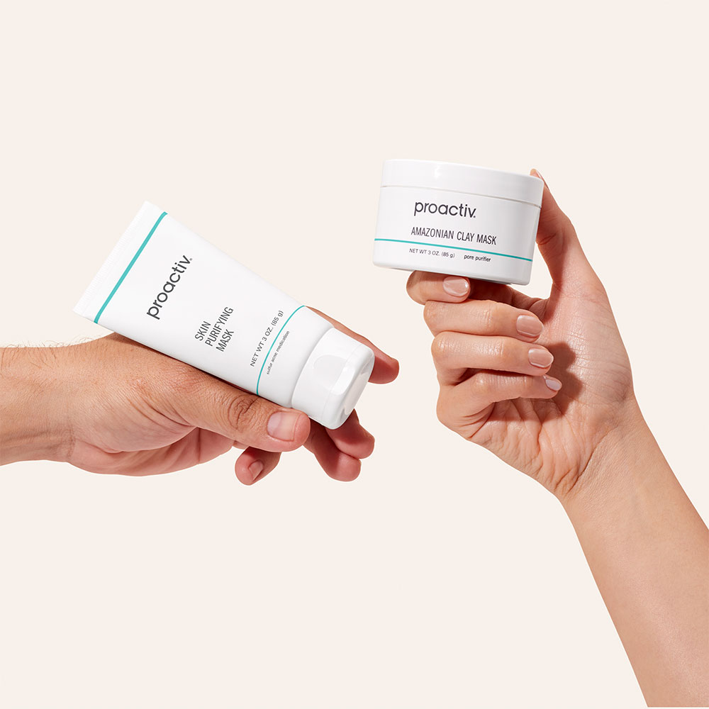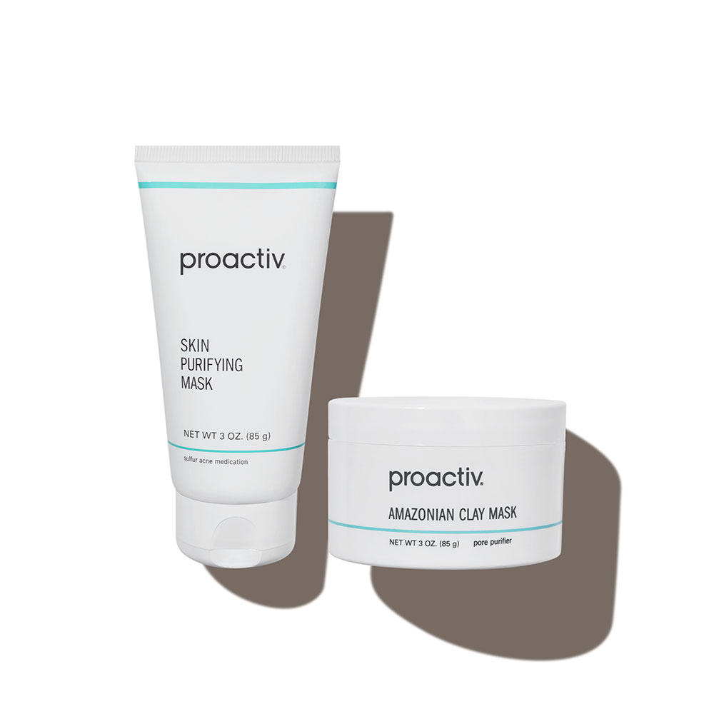 - <h6> Proactiv Skin Purifying Mask </h6> <ul> <li>Skin Purifying Mask</li> <li>Detoxifying (6%) sulfur acne medicine clears blemishes and helps prevent new breakouts from forming</li> <li>Helps alleviate irritation and reduces the appearance of redness</li> <li>Deep cleans pores and shrinks their appearance</li> <li>Helps give the appearance of smoother, more refined skin</li> <li>Helps reduce excess oil and shine</li> <li>Developed to help moisturize the skin</li> <li>Formulated with kaolin clay, antioxidant vitamin E and tea tree oil</li> <li>Non-greasy, noncomedogenic</li> <li>Dermatologist tested</li> <li>Suitable for all skin types – oily, dry, combination, normal and sensitive</li> <li>Size: 3 fl oz</li> </ul> <h6>Amazonian Clay Mask</h6> <ul> <li>Purifying: Formulated with bentonite and kaolin, a blend of Amazonian white clay and minerals used to absorb impurities and excess oil</li> <li>Restorative: Deep cleans pores while shrinking their appearance; helps moisturize to reveal softer, smoother, healthier-looking skin</li> <li>Nourishing: Vitamin, nutrient and antioxidant rich formula contains skin-conditioning botanical extracts</li> </ul>